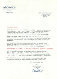 Er schrieb entsprechend der dort vorliegenden Kundenkartei alle Kunden an und stellte sich vor nach dem Motto: "ADDIATOR jetzt auch von ADDIMULT".