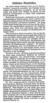 - Siehe auch Addiator Werbung