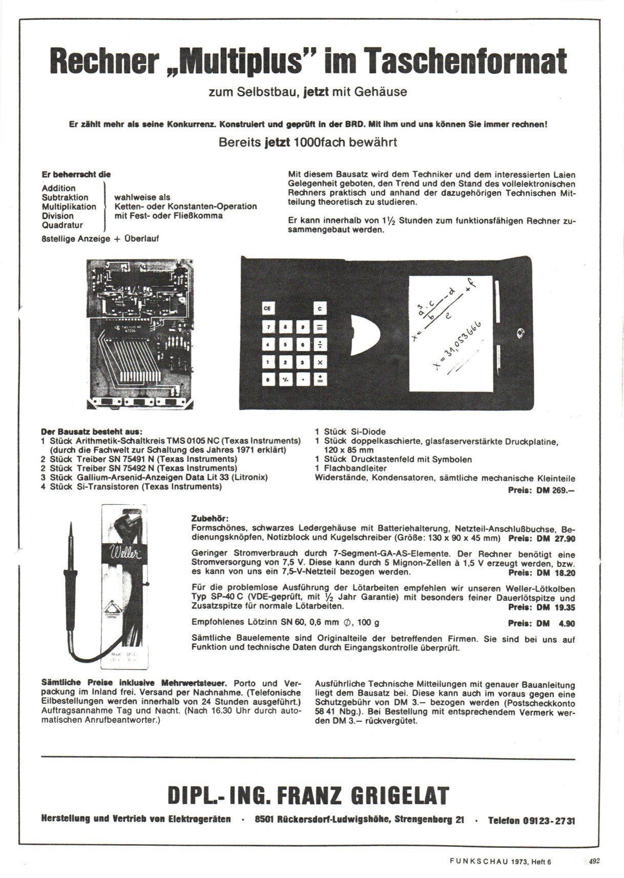 Funkschau 06-73 -S.492, Anzeige Franz Grigelat